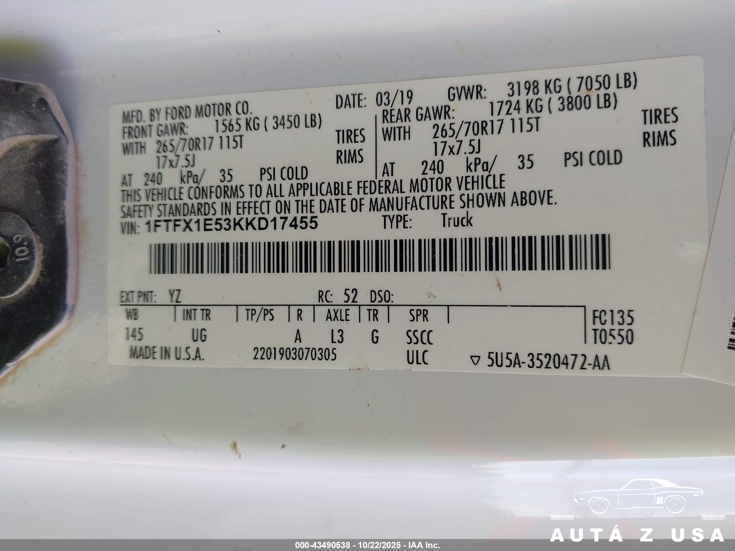 specyfikacja: zgodnie z normą Forda (WSS-M2C961-A1 lub aktualną dla silnika 5.0 V8 Coyote)